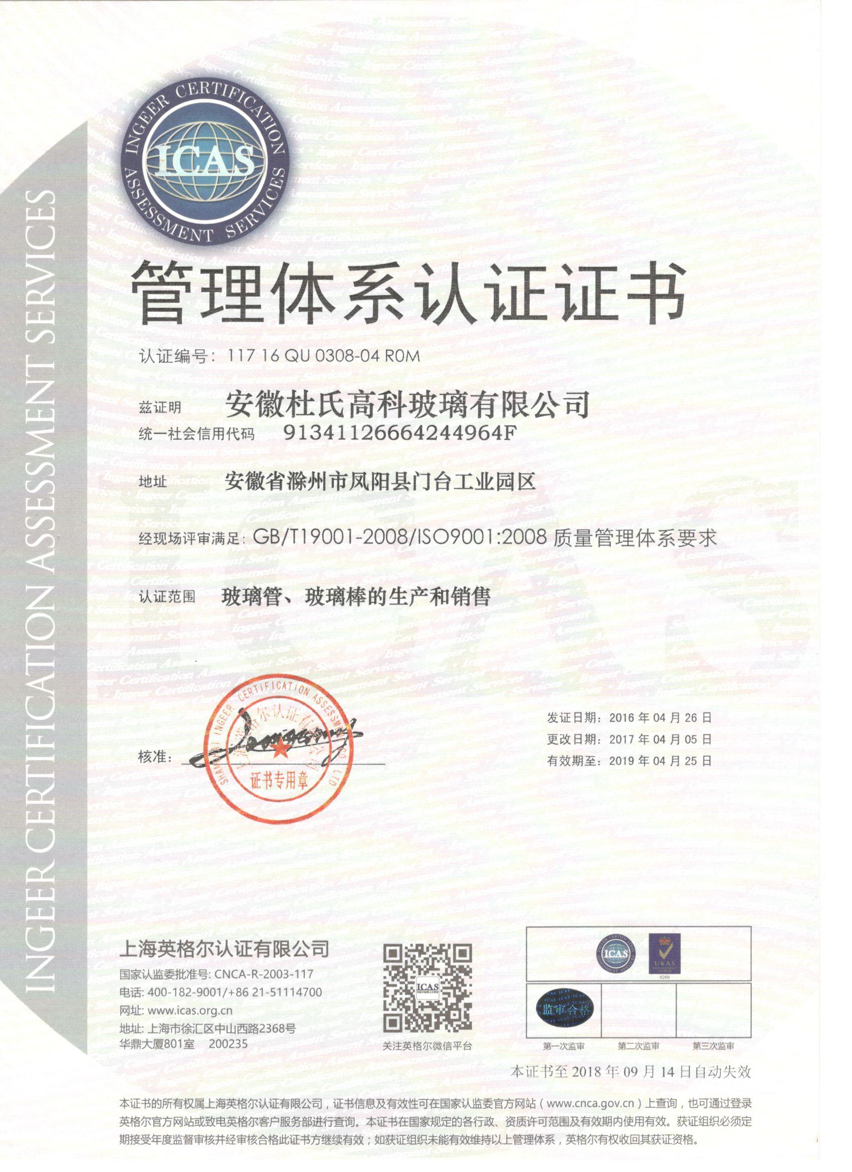質(zhì)量管理體系證書(shū)